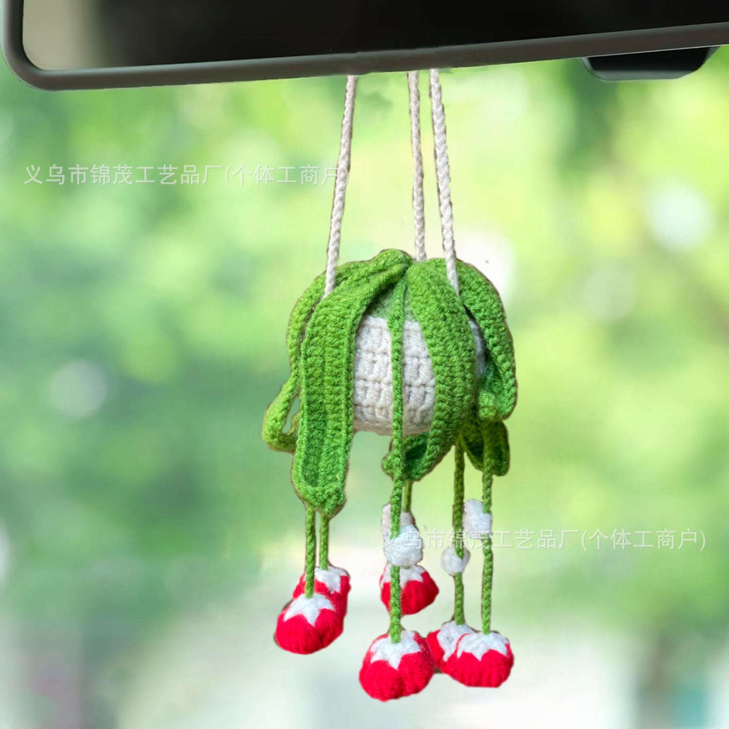 Colgante de planta de coche Decoración de coche Colgante de espejo retrovisor Lana creativa en el coche