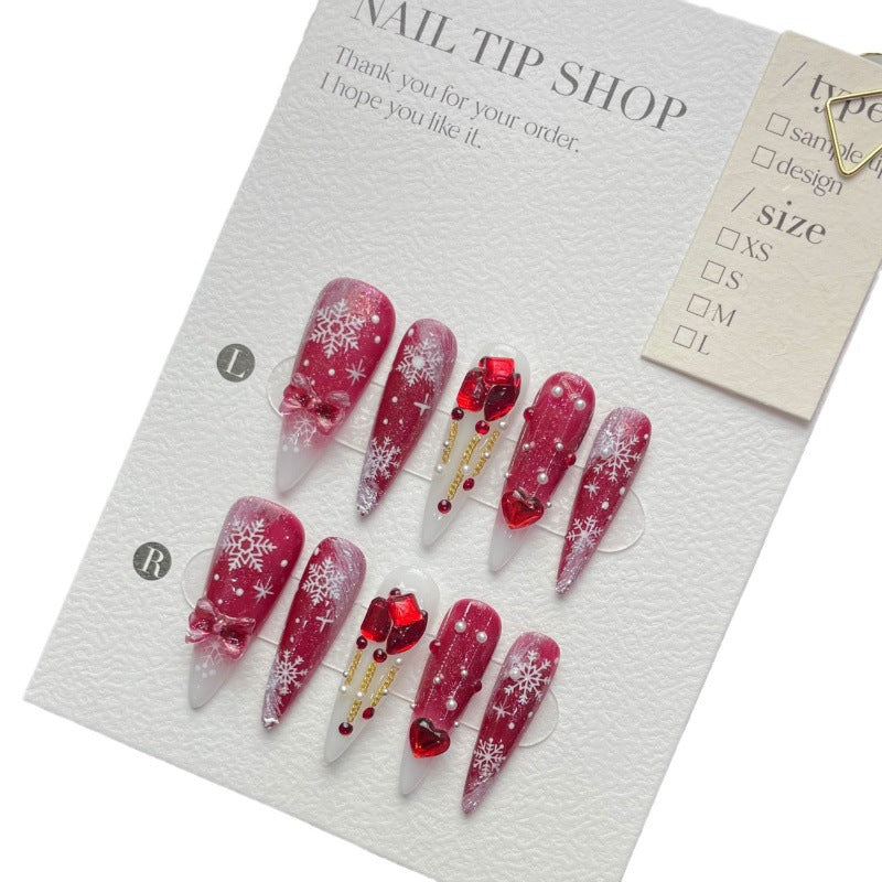 Colección navideña Feliz Navidad Industria pesada Arte de uñas hecho a mano Uñas postizas largas y cortas