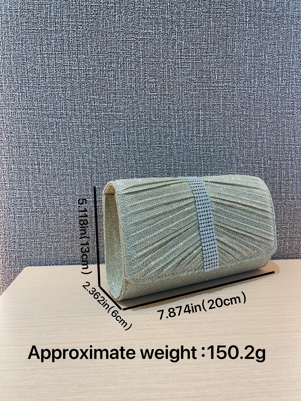 Este bolso de noche plateado con purpurina derrocha elegancia y es perfecto para ocasiones especiales y eventos formales.