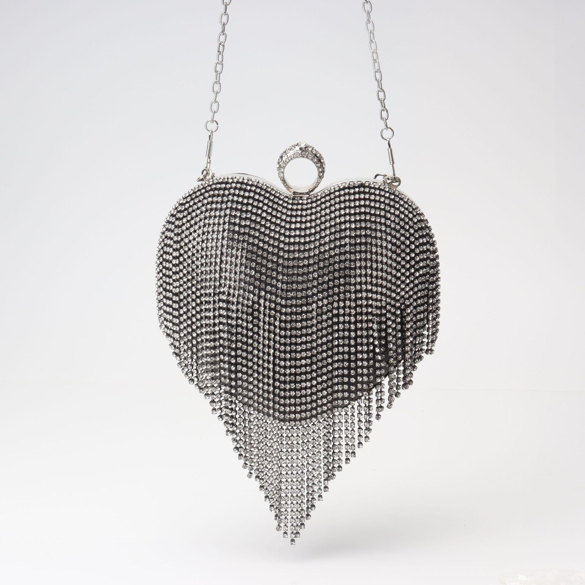 Bolso con flecos y pedrería, bolso de fiesta de cumpleaños, bolso de noche con forma de corazón, bolso de fiesta, bolso de graduación, bolso de fiesta, bolso de mano para graduación, bolso de boda cruzado con cadena
