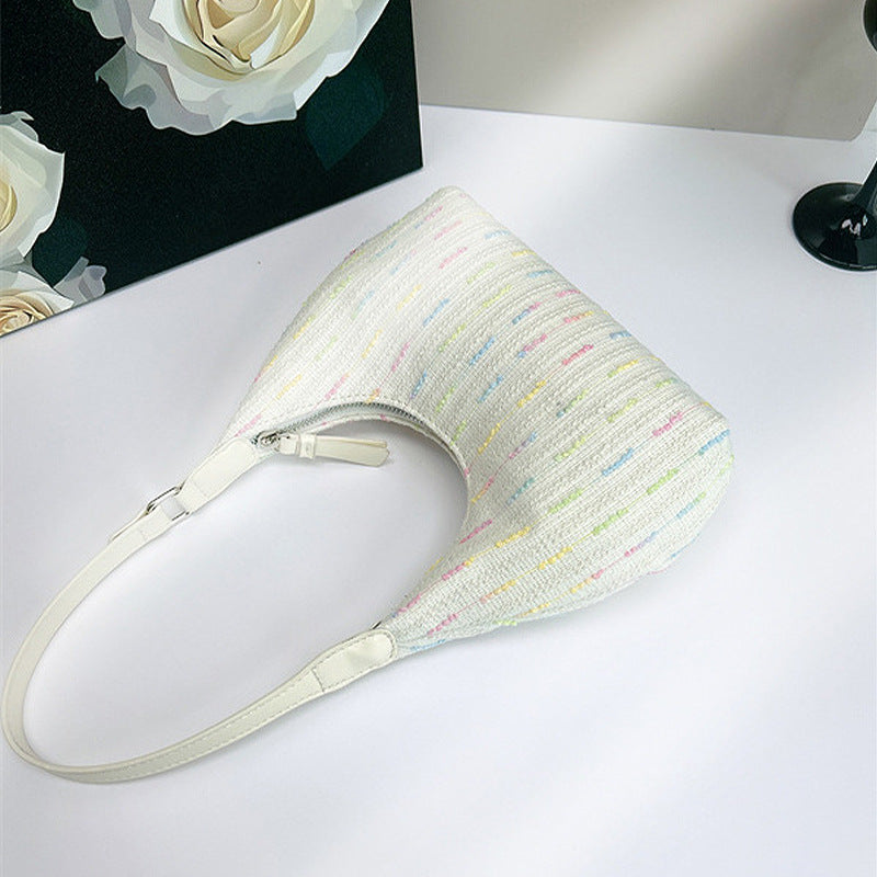 Bolso de hombro de punto chic - Bolso de lona elegante para mujer, ideal para el verano, y bolso hobo pequeño para niñas
