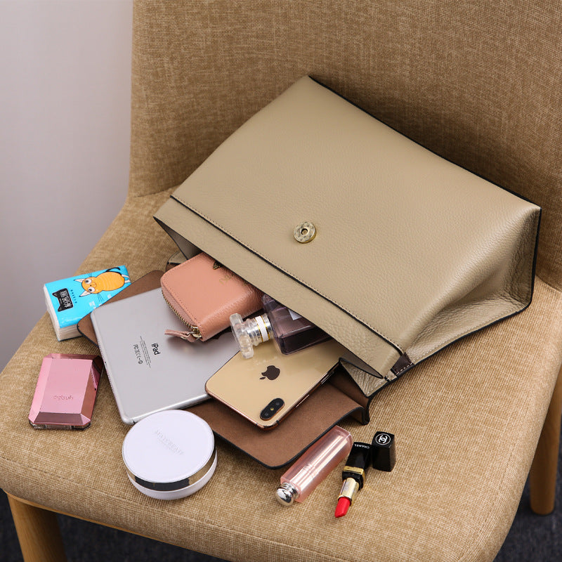 Bolso bandolera de piel auténtica de gran capacidad, estilo tote.