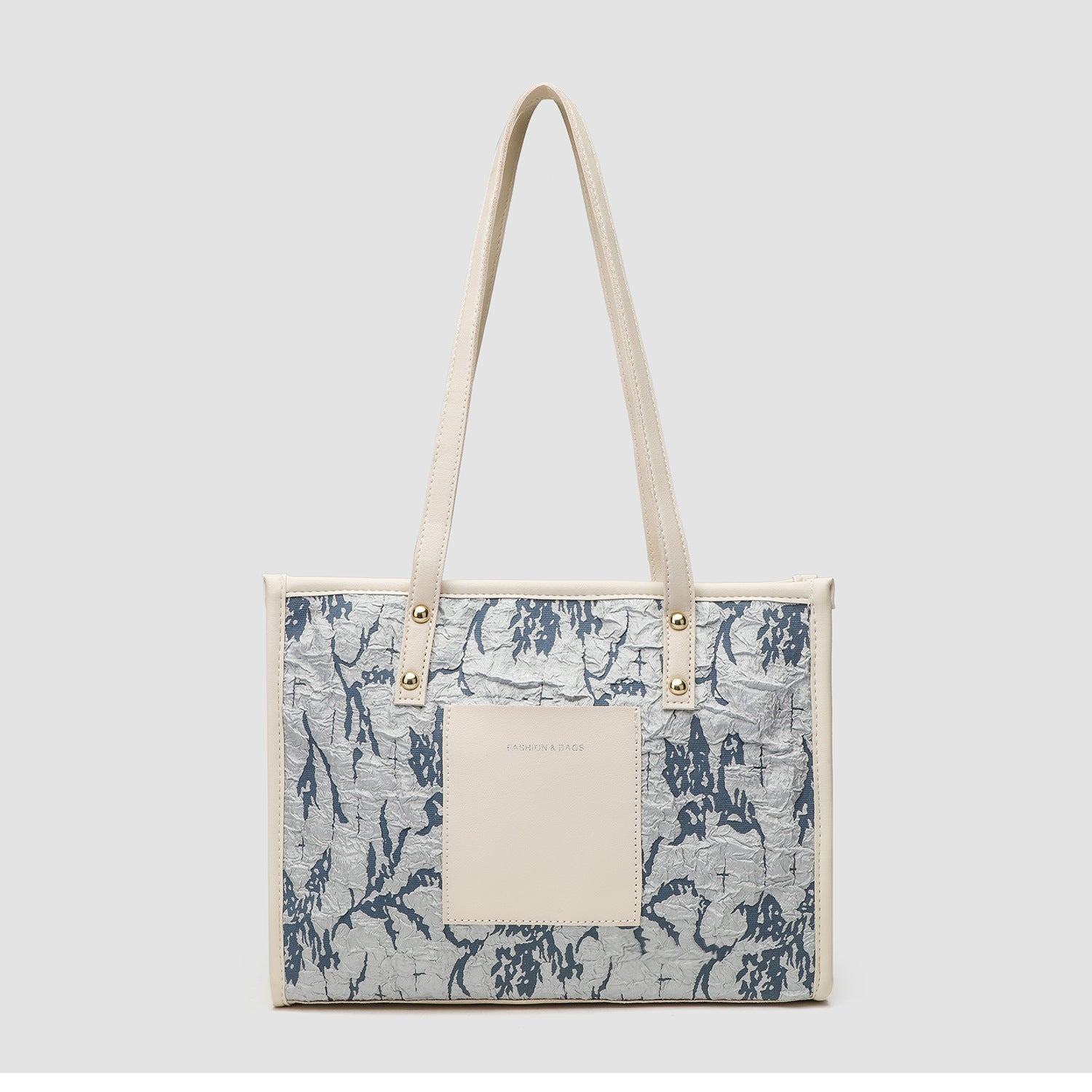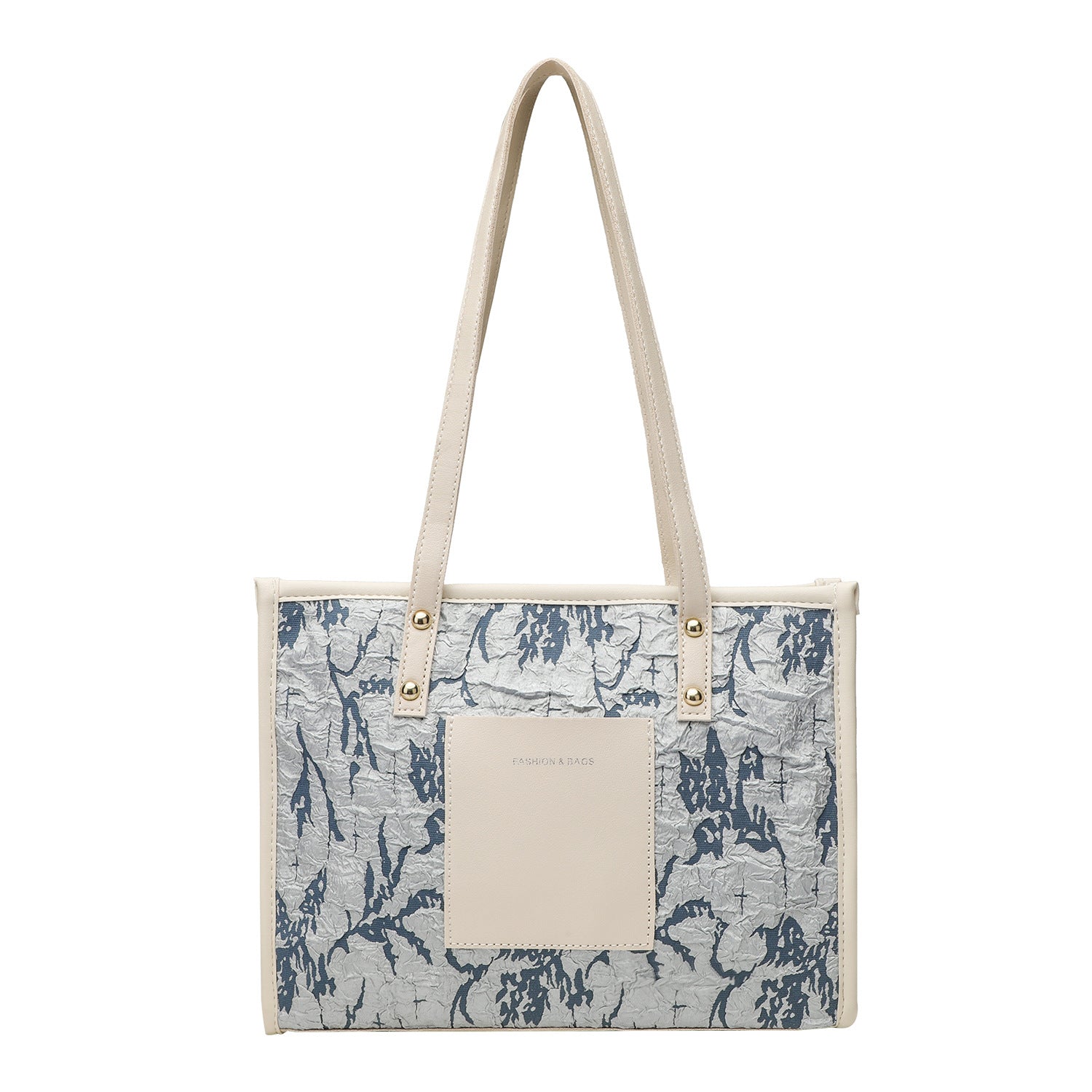 Bolso tote cuadrado de gran capacidad, bolso tote de invierno para mujer, bolso bandolera versátil y portátil de moda azul estampado para ir al trabajo