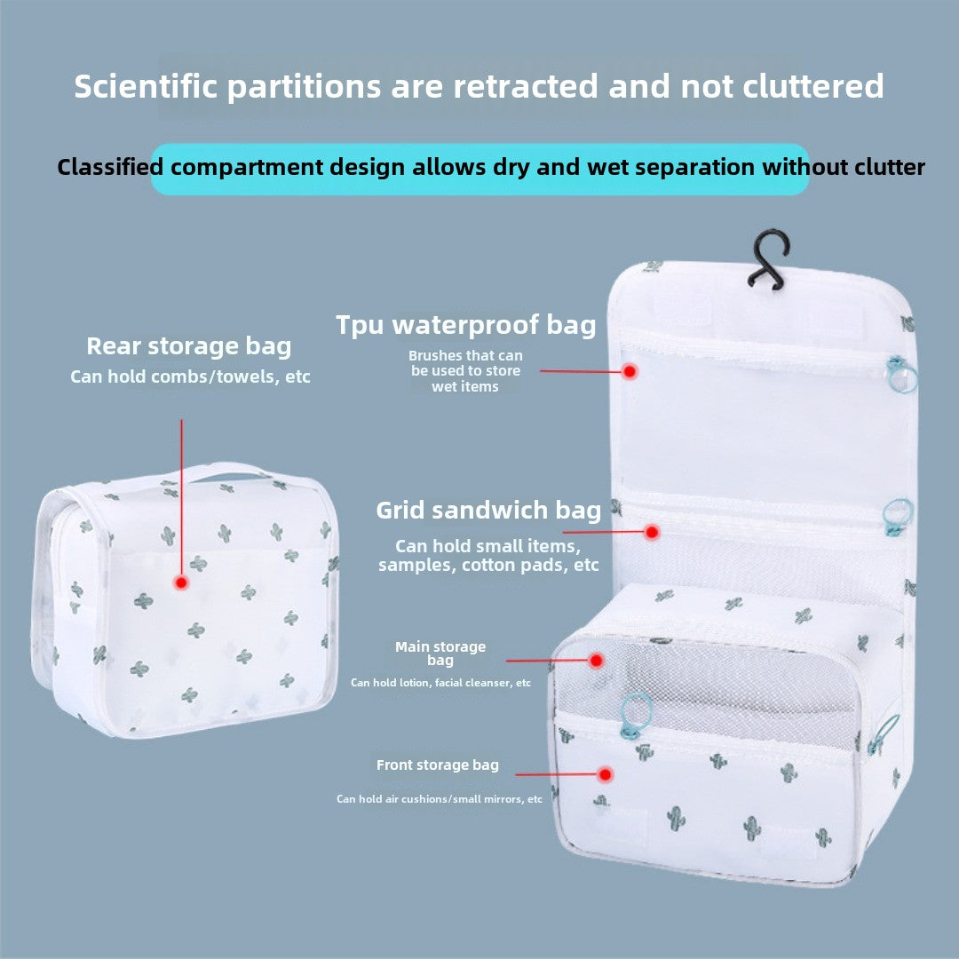 Mantente organizado y protegido en tus viajes con nuestro neceser de viaje. Este neceser de gran capacidad cuenta con compartimentos separados para artículos húmedos y secos, lo que garantiza que tus artículos húmedos, como cepillos de dientes y maquinillas de afeitar, se mantengan alejados de los artículos secos, como maquillaje y productos para el cuidado de la piel. Su diseño impermeable lo protege de derrames y humedad, mientras que el práctico gancho permite colgarlo fácilmente en cualquier lugar. Adecuado tanto para hombres como para mujeres, este versátil neceser es perfecto para el uso diario o para viajes largos. Experimenta la combinación perfecta de funcionalidad y estilo con este accesorio de viaje imprescindible.
