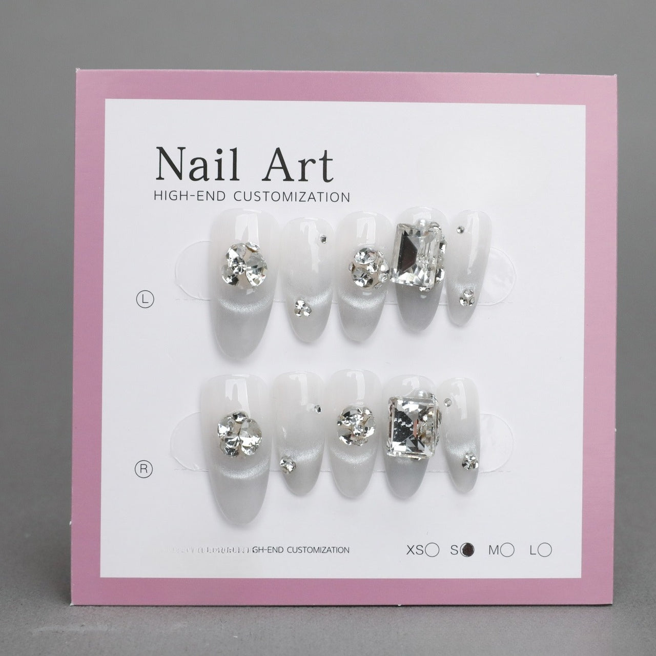 Uñas acrílicas estilo ojo de gato con cristales blancos tipo ataúd
