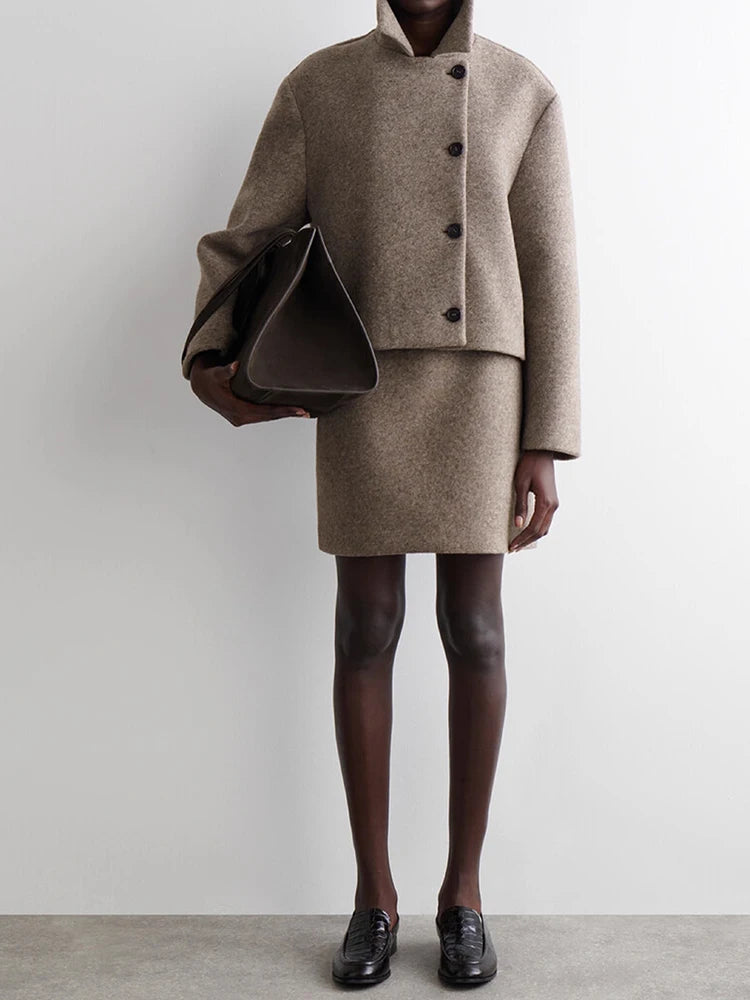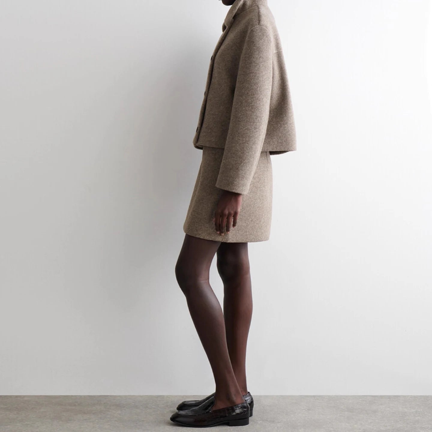 Una moderna falda marrón estilo trineo con un favorecedor diseño de corte A y largo midi. Esta versátil falda es una prenda esencial y chic para tu armario de otoño.