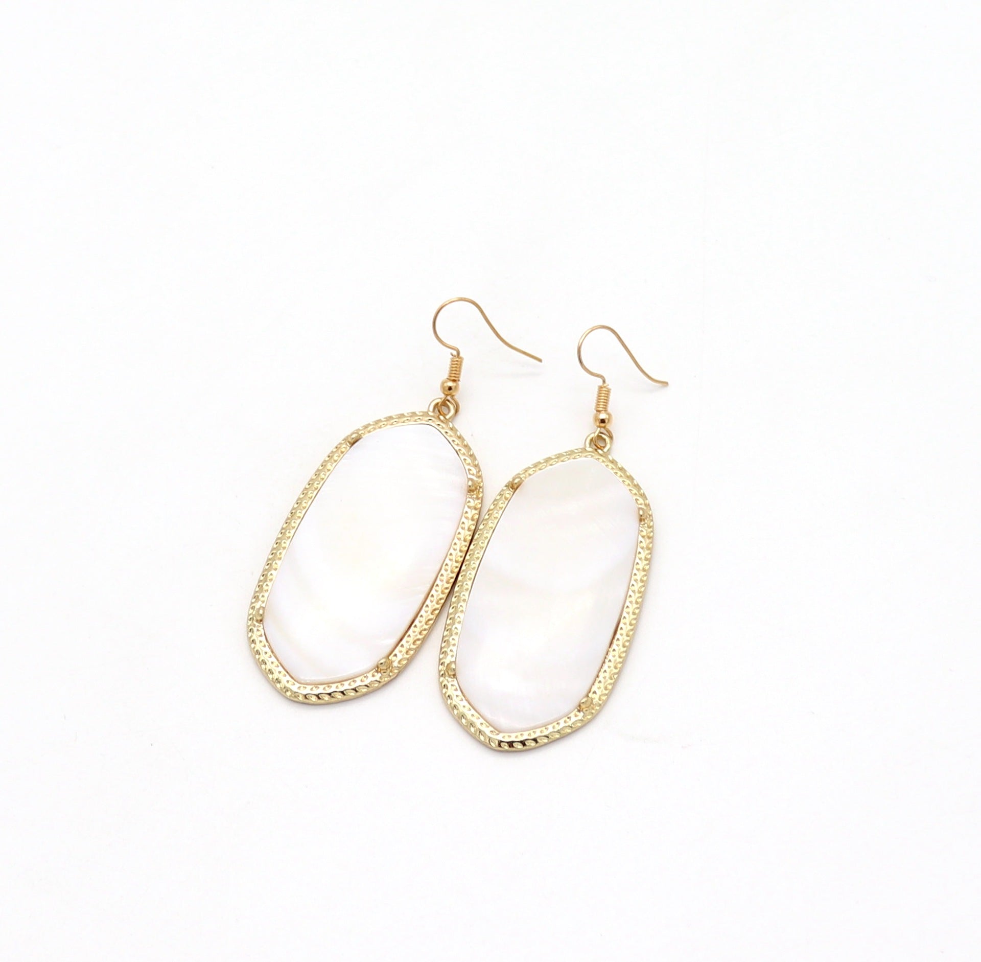 Elegant ocean-inspired artistry. These unique earrings feature a large, real abalone shell inlay with opal glass accents, all set in gleaming silver rhodium plating.