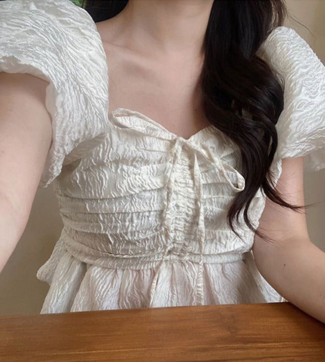 Delicate romance meets modern crop style. This feminine top features pretty floral ruffles and a flattering peplum hem. The off-shoulder design adds a touch of allure. Perfect for creating soft, romantic looks with Asian fashion influence.