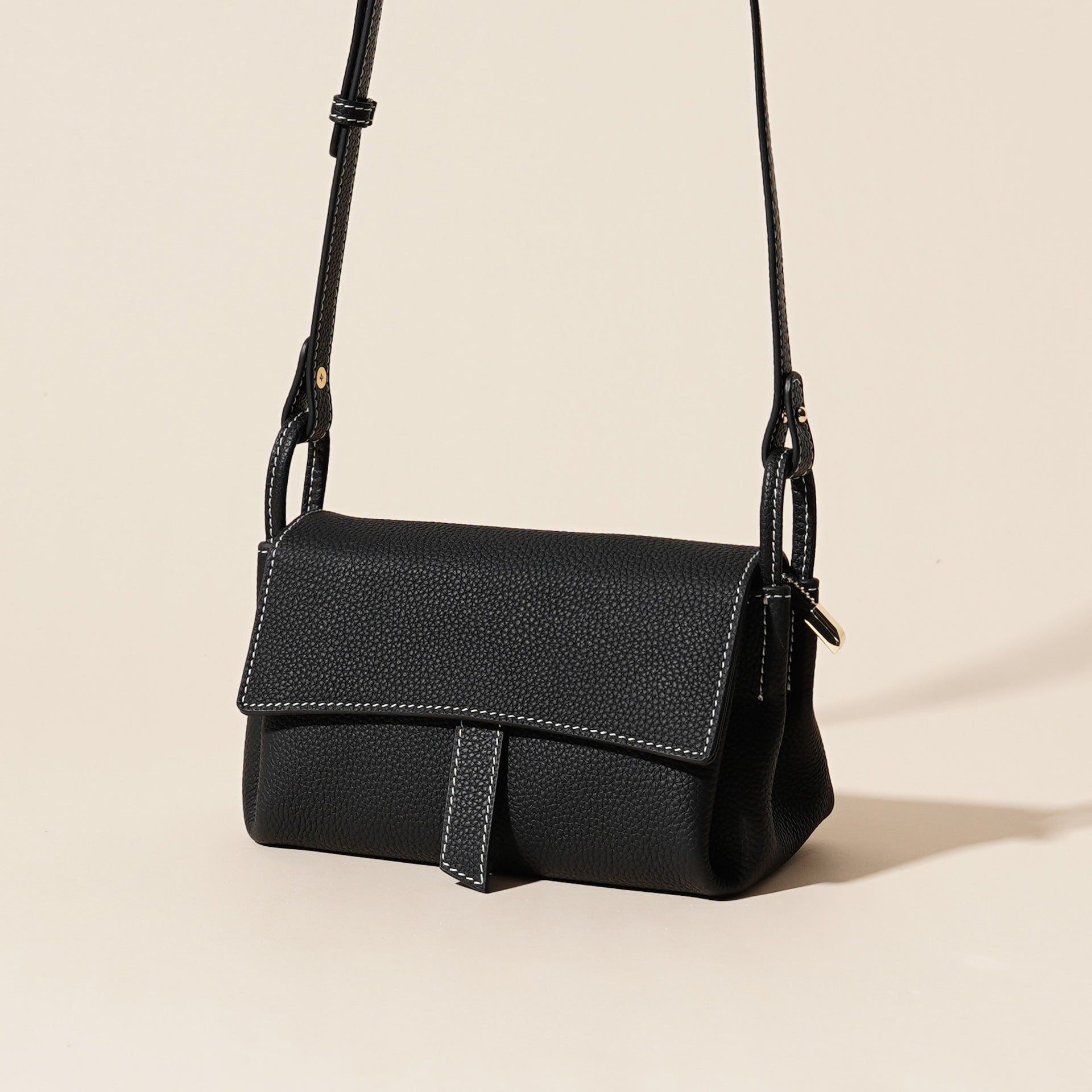 Inside, the compact yet spacious interior provides ample room for your daily essentials, ensuring you stay organized on the go. The secure flap closure keeps your items safe, while the adjustable strap offers comfortable wear as a crossbody or shoulder bag.