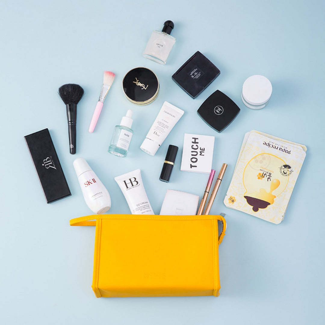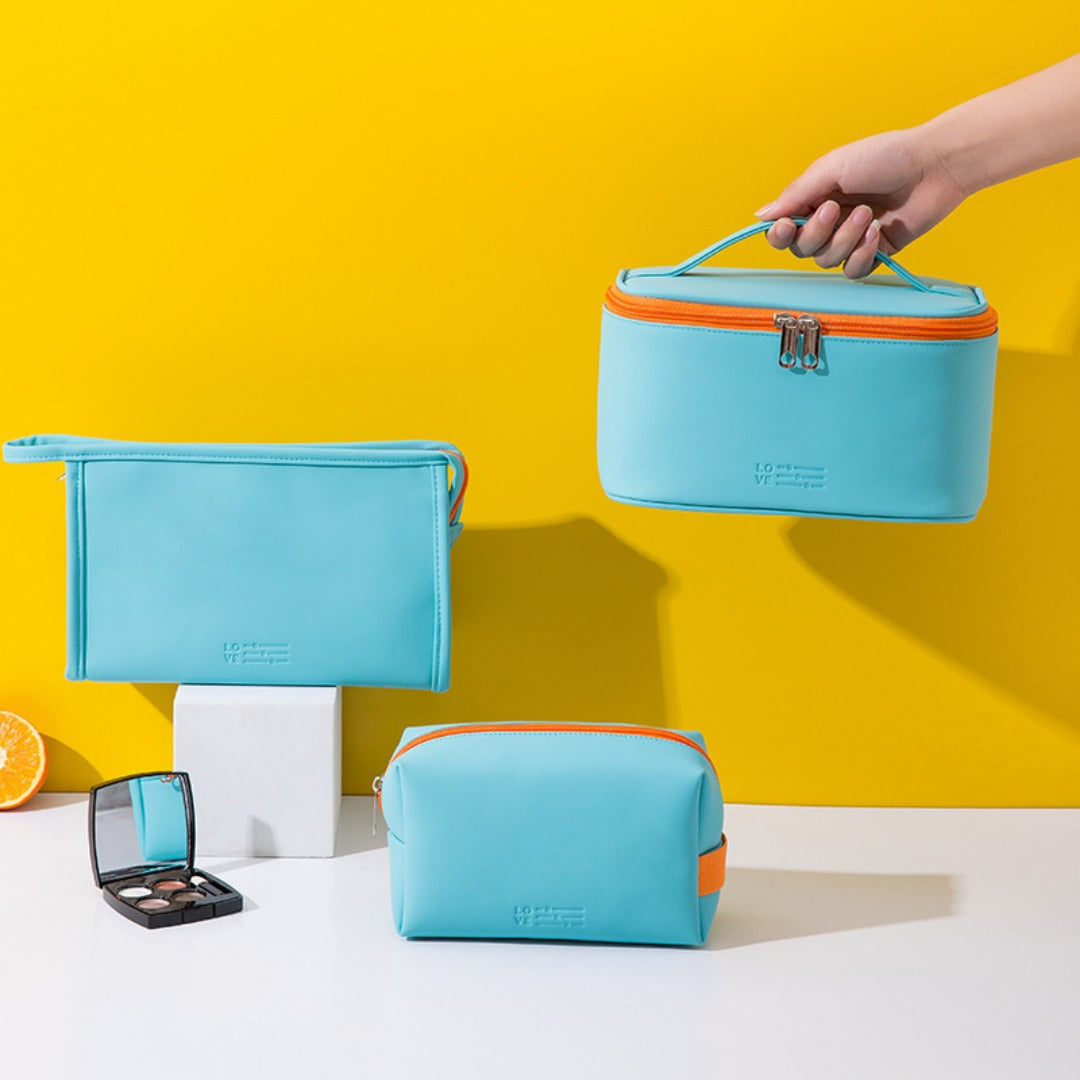 PU Waterproof Material: Crafted from high-quality PU material, these cosmetic bags are not only stylish but also waterproof. They protect your belongings from spills and moisture, ensuring your items stay dry and safe at all times.