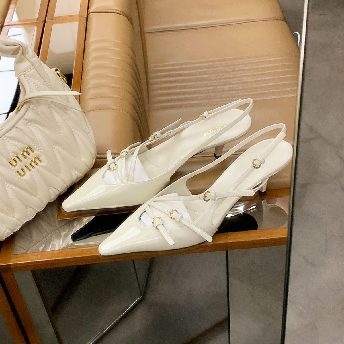 Combining the elegance of a pump with the allure of a sandal, these pointed-toe heels feature a delicate ankle strap for a timeless French-inspired look.