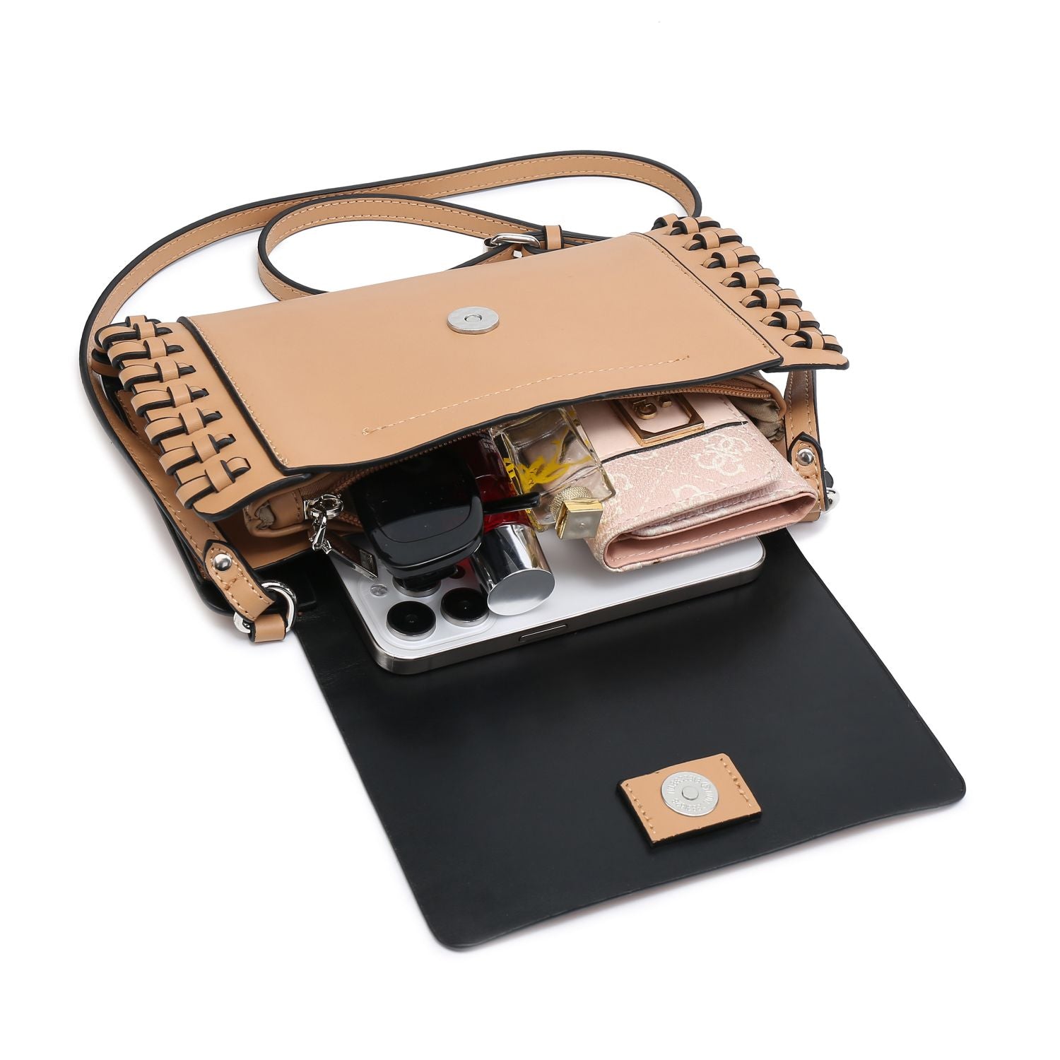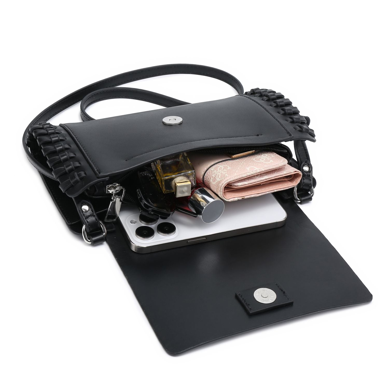 Silver Small Crossbody Bag Tan Compact Black Square Purse With Handcrafted Weave detail