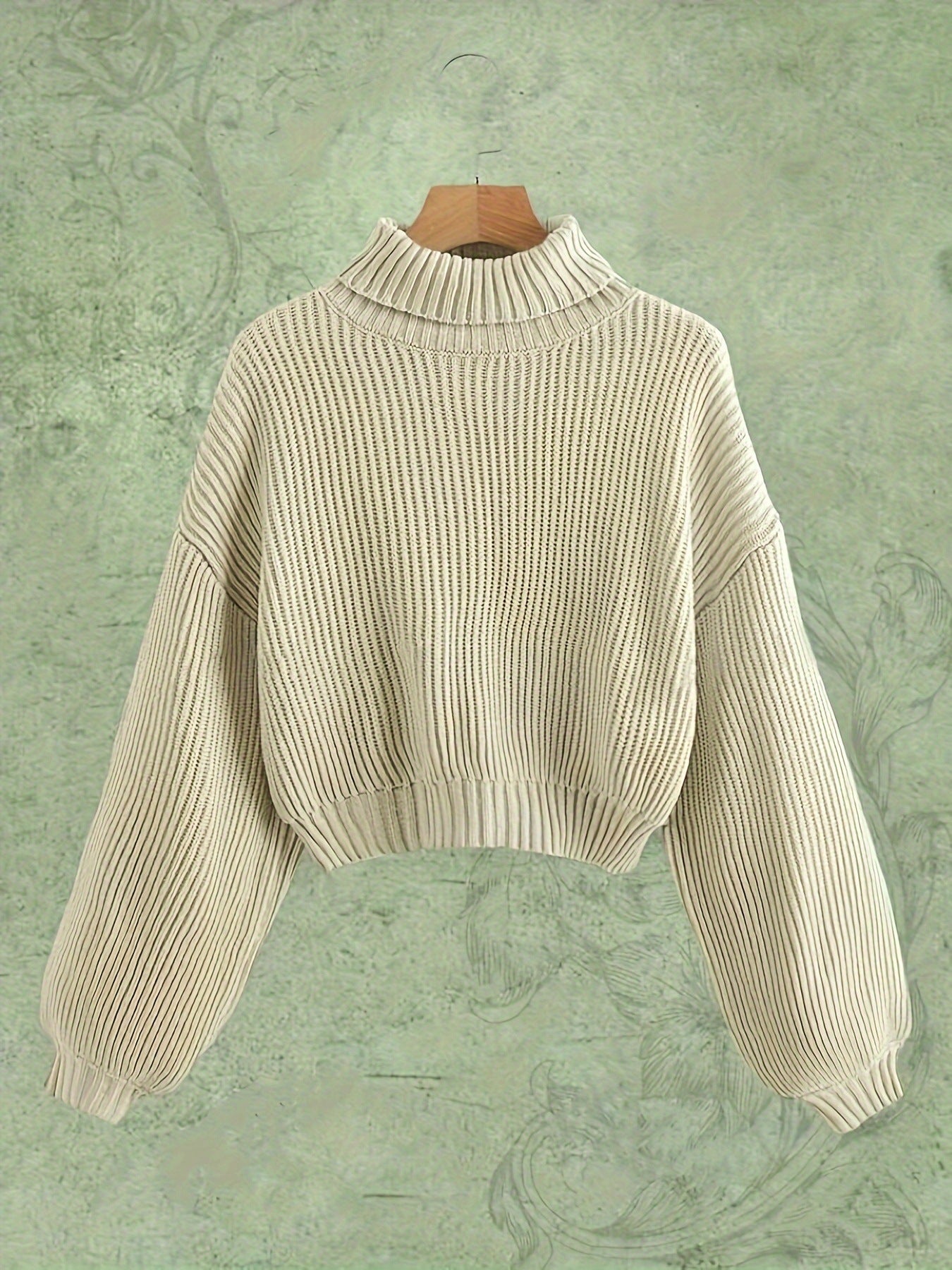 Simple and sophisticated, this solid color turtleneck sweater is an elegant wardrobe staple. Its timeless design is perfect for creating polished, minimalist looks.